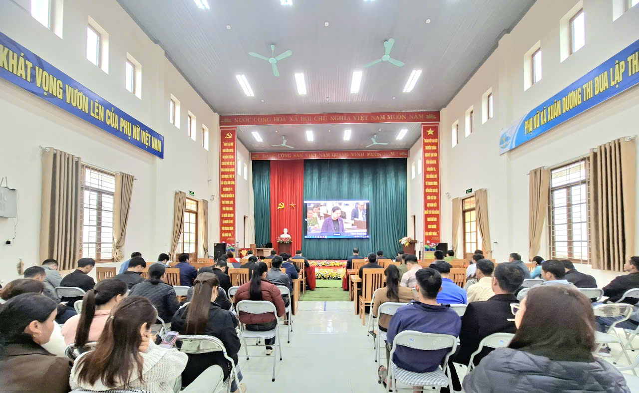 Ngày 26/2/2026, tại Nhà Văn hóa xã Xuân Dương, Đảng ủy, HĐND, UBND, Ủy ban MTTQ Việt Nam xã đã tổ chức điểm cầu trực tuyến kết nối với Hội nghị toàn quốc triển khai công tác bầu cử đại biểu Quốc hội khóa XVI và đại biểu Hội đồng nhân dân các cấp nhiệm kỳ 2026 - 2031, do đồng chí Trần Thanh Mẫn, Ủy viên Bộ chính trị, chủ tịch Quốc Hội, Chủ tịch Hội đồng Bầu cử quốc gia chủ trì Hội nghị.