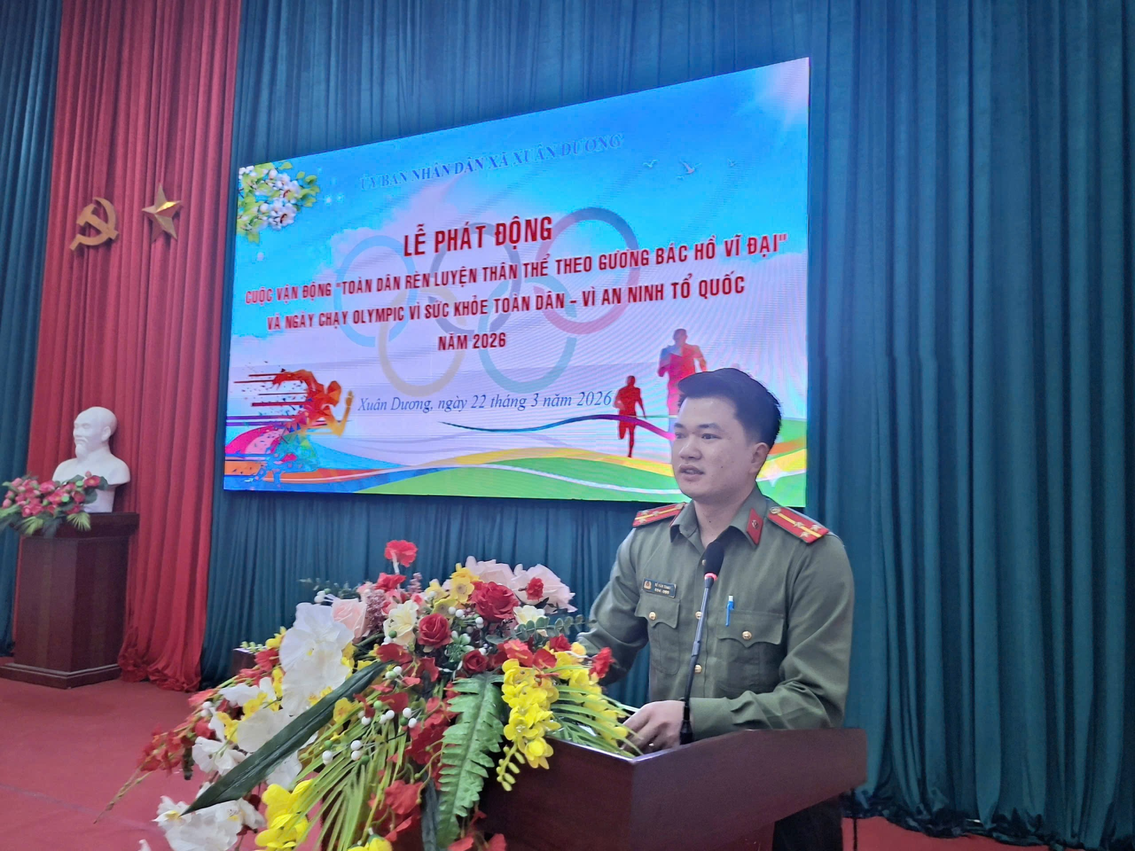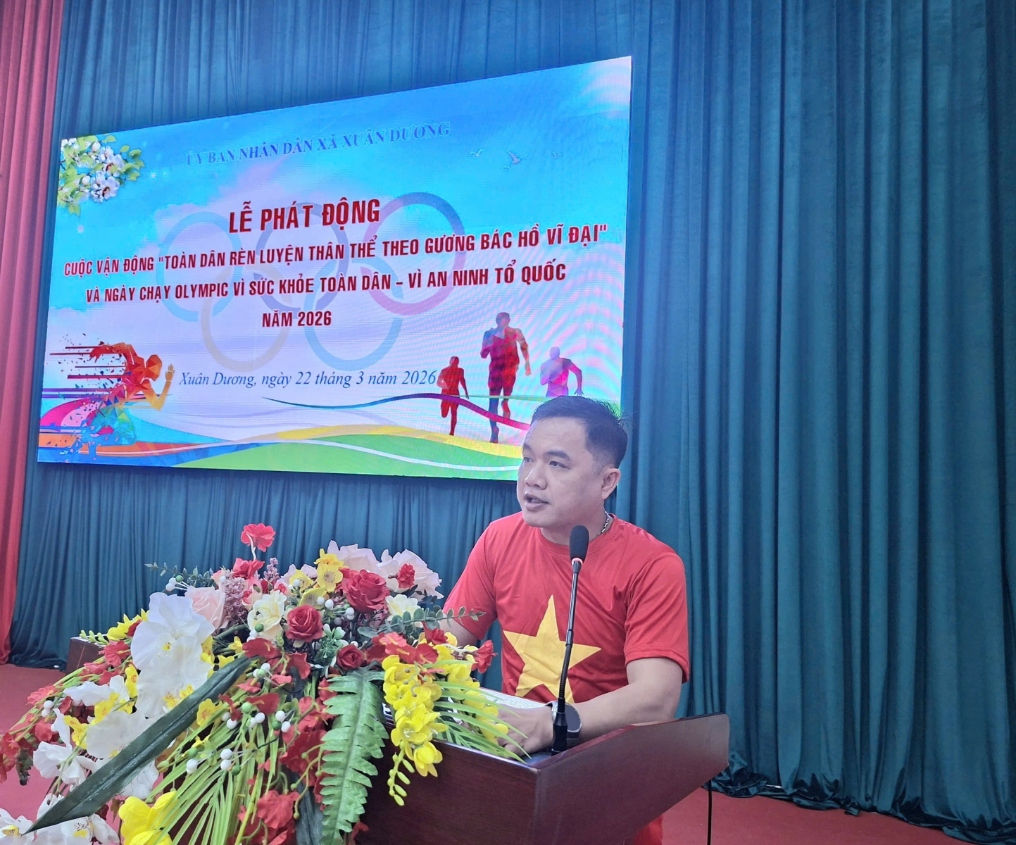 Sáng ngày 22/3/2026, tại Nhà Văn hóa xã Xuân Dương đã diễn ra Lễ phát động cuộc vận động "Toàn dân rèn luyện thân thể theo gương Bác Hồ vĩ đại" và “Ngày chạy Olympic – Vì sức khỏe toàn dân – Vì An ninh Tổ quốc” năm 2026. Dự Lễ phát động có các đồng chí Lãnh đạo Đảng ủy, HĐND, UBND, UBMTTQ Việt Nam xã; Lãnh đạo các Phòng, ban, nghành, đoàn thể trên địa bàn xã; cán bộ, công chức, viên chức và người lao động, lực lượng vũ trang, đoàn viên, hội viên, học sinh và Nhân dân trên địa bàn xã.