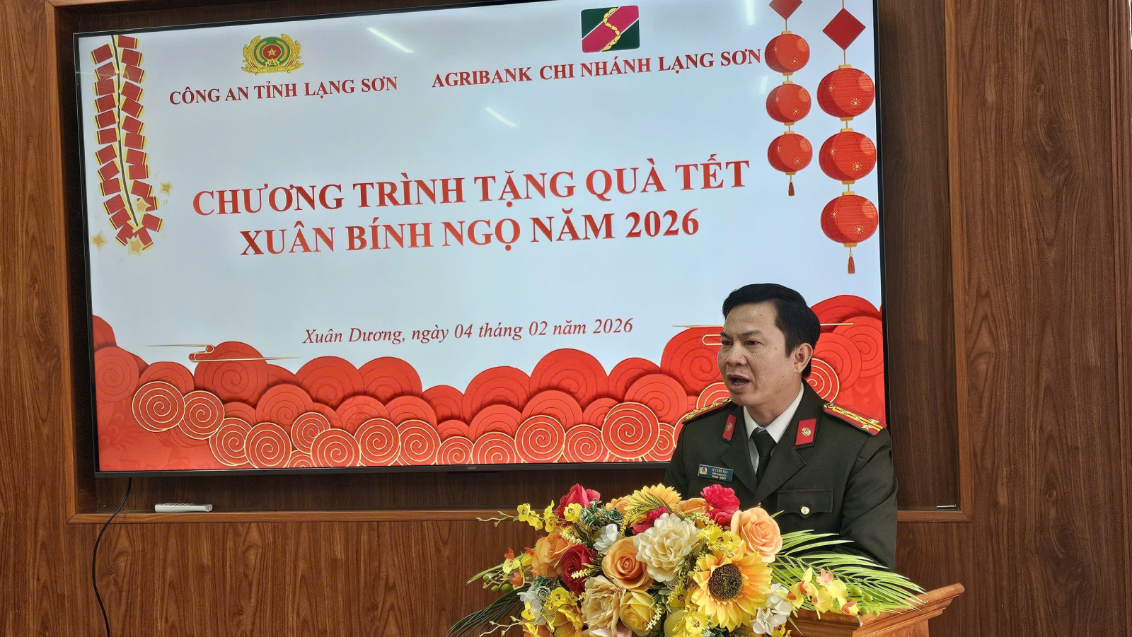 Ngày 04/02/2026, Đoàn thăm, tặng quà Tết do đồng chí Đại tá Lê Công Anh, Phó Giám đốc Công an tỉnh làm Trưởng đoàn đã đến thăm, tặng quà Tết Nguyên đán Bính Ngọ năm 2026 cho các gia đình chính sách, người có công, hộ nghèo, các gia đình có hoàn cảnh đặc biệt khó khăn tại xã Xuân Dương. Cùng đi với Đoàn có đồng chí Đinh Mạnh Tranh, Phó Giám đốc Agribank chi nhánh Lạng Sơn; các phòng chuyên môn thuộc Công an tỉnh, Agribank chi nhánh Lạng Sơn. Về phía xã có đồng chí Vy Văn Bông, Bí thư Đảng ủy, Chủ tịch HĐND xã; đồng chí Phạm Văn Hoài, Phó Bí thư Đảng ủy, Chủ tịch UBND xã; đại diện lãnh đạo Ủy ban MTTQ Việt Nam xã, Ban Chỉ huy quân sự xã; đại diện Lãnh đạo Công an xã; thủ trưởng các cơ quan chuyên môn của xã.