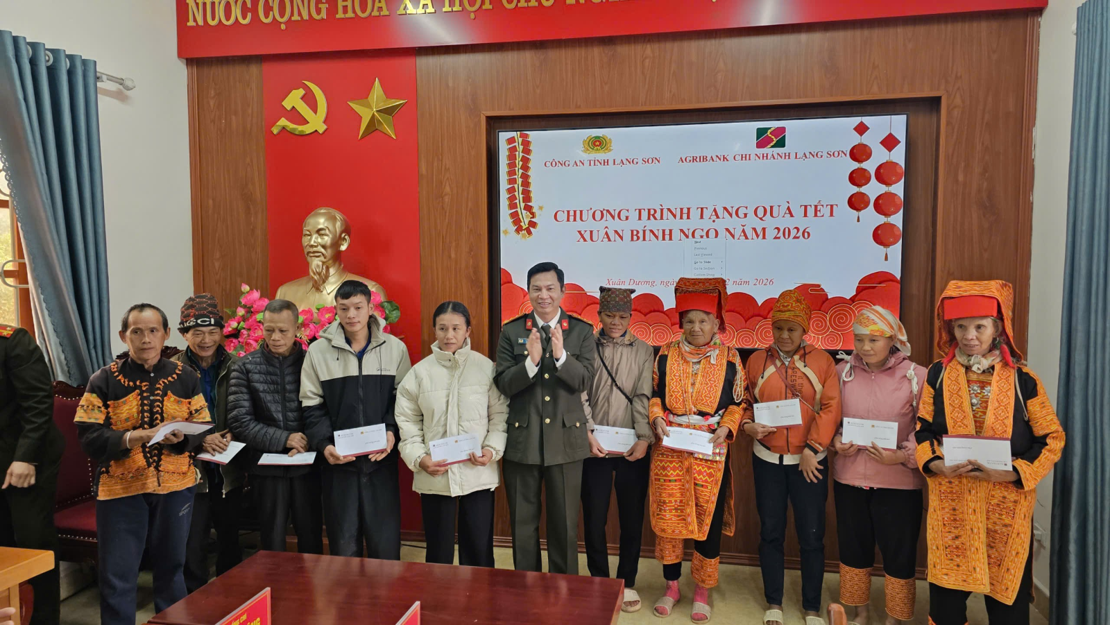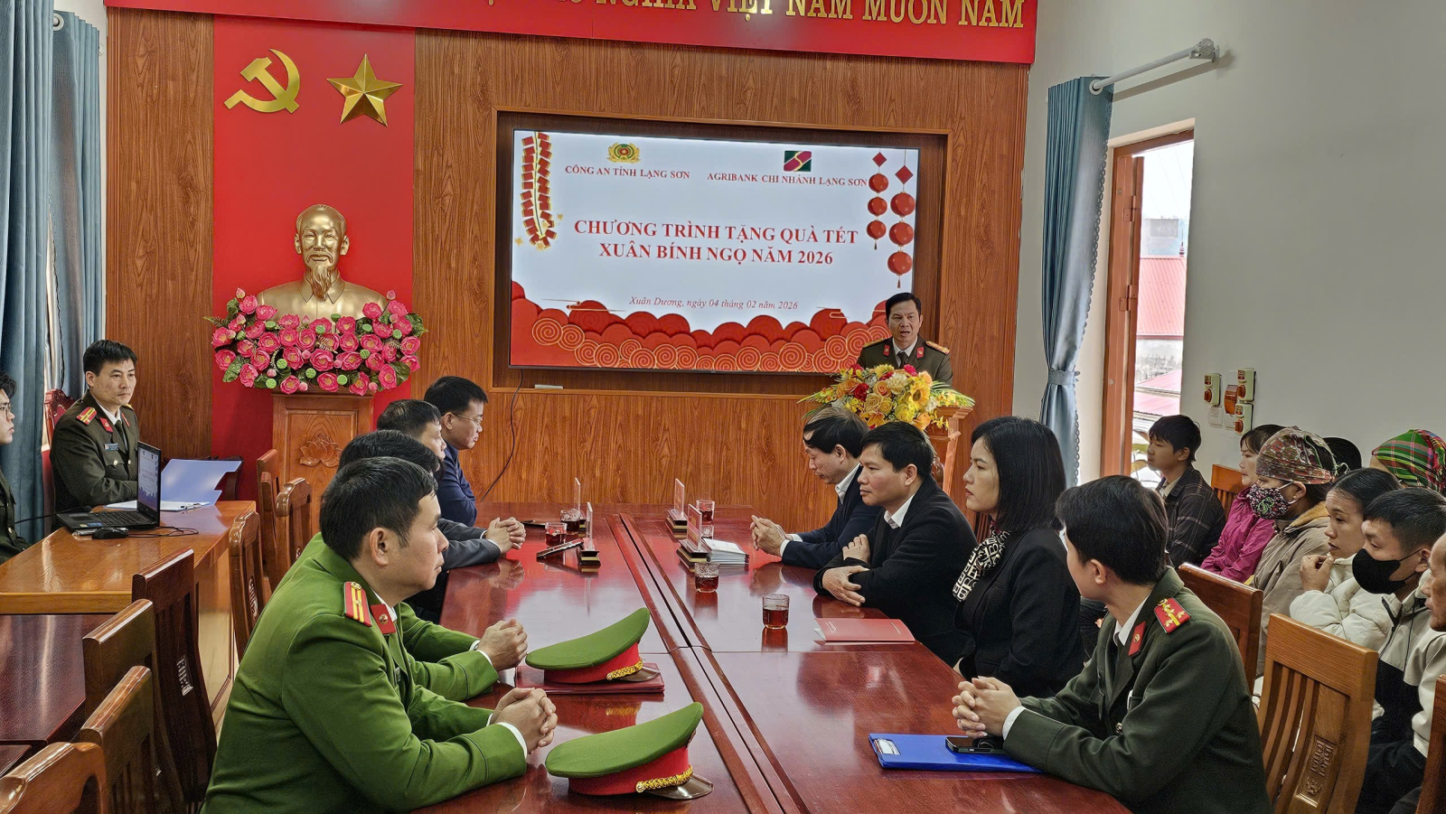 Công an tỉnh Lạng Sơn, ngân hàng Agribank chi nhánh Lạng Sơn thăm, tặng quà Tết Nguyên đán Bính Ngọ 2026 tại xã Xuân Dương