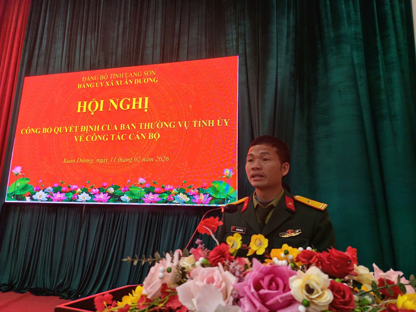Tại Hội nghị, đại diện Đảng ủy xã đã công bố Quyết định số 277-QĐ/TU ngày 31/01/2026 của Ban Thường vụ Tỉnh ủy về việc chỉ định đồng chí Nguyễn Xuân Hải, Chỉ huy trưởng Ban Chỉ huy Quân sự xã Xuân Dương, tham gia Ban Chấp hành, Ban Thường vụ Đảng ủy xã Xuân Dương nhiệm kỳ 2025-2030..png)
