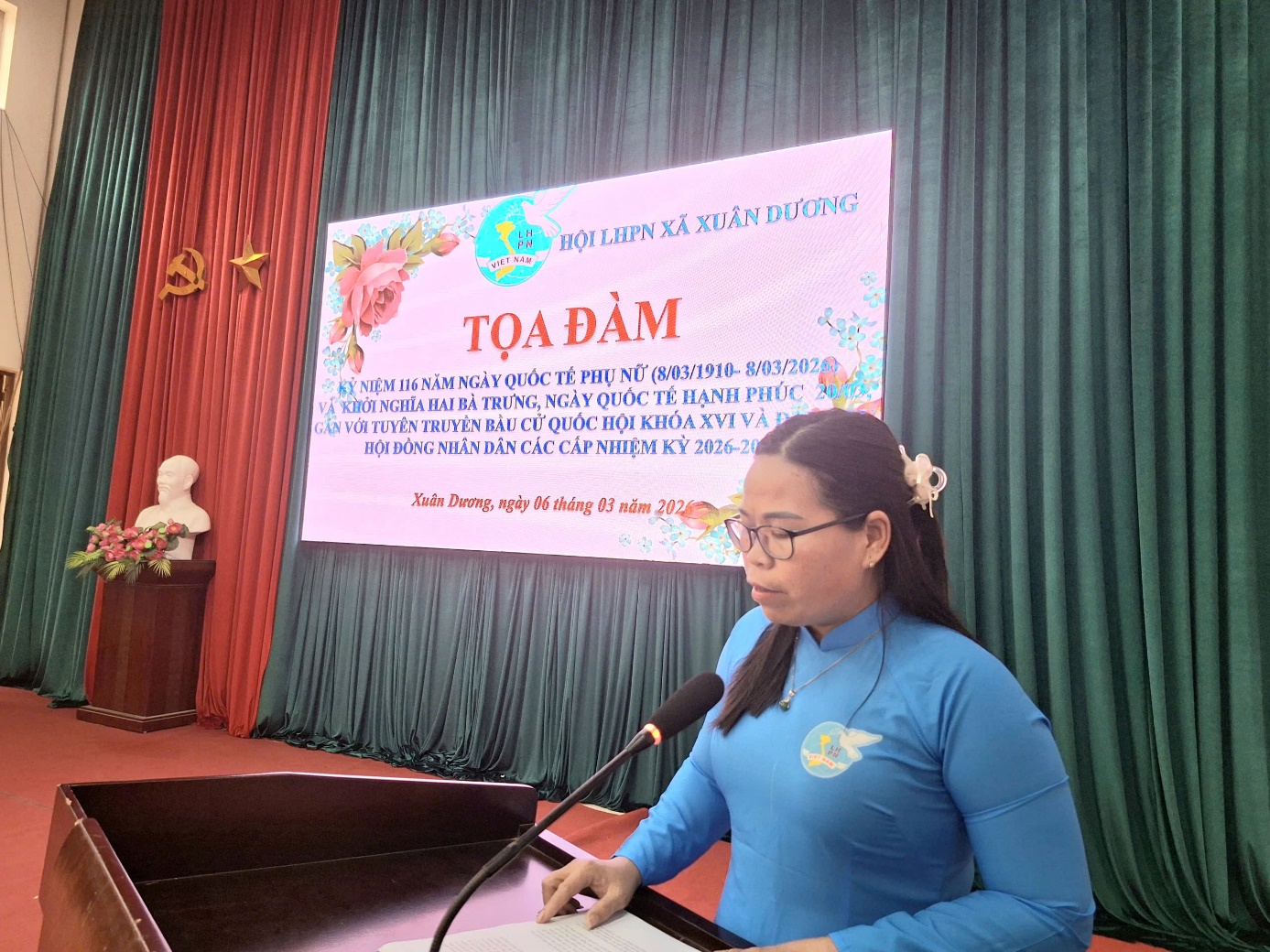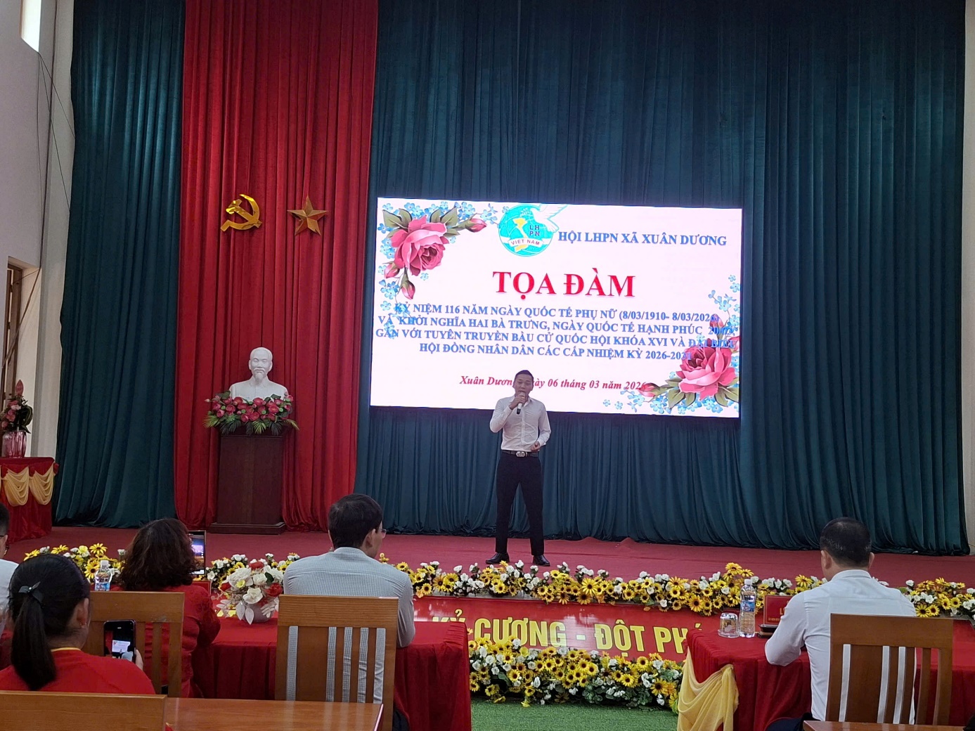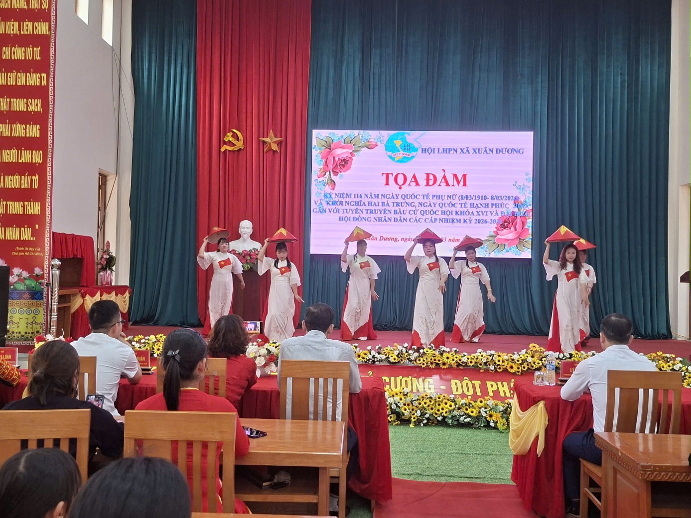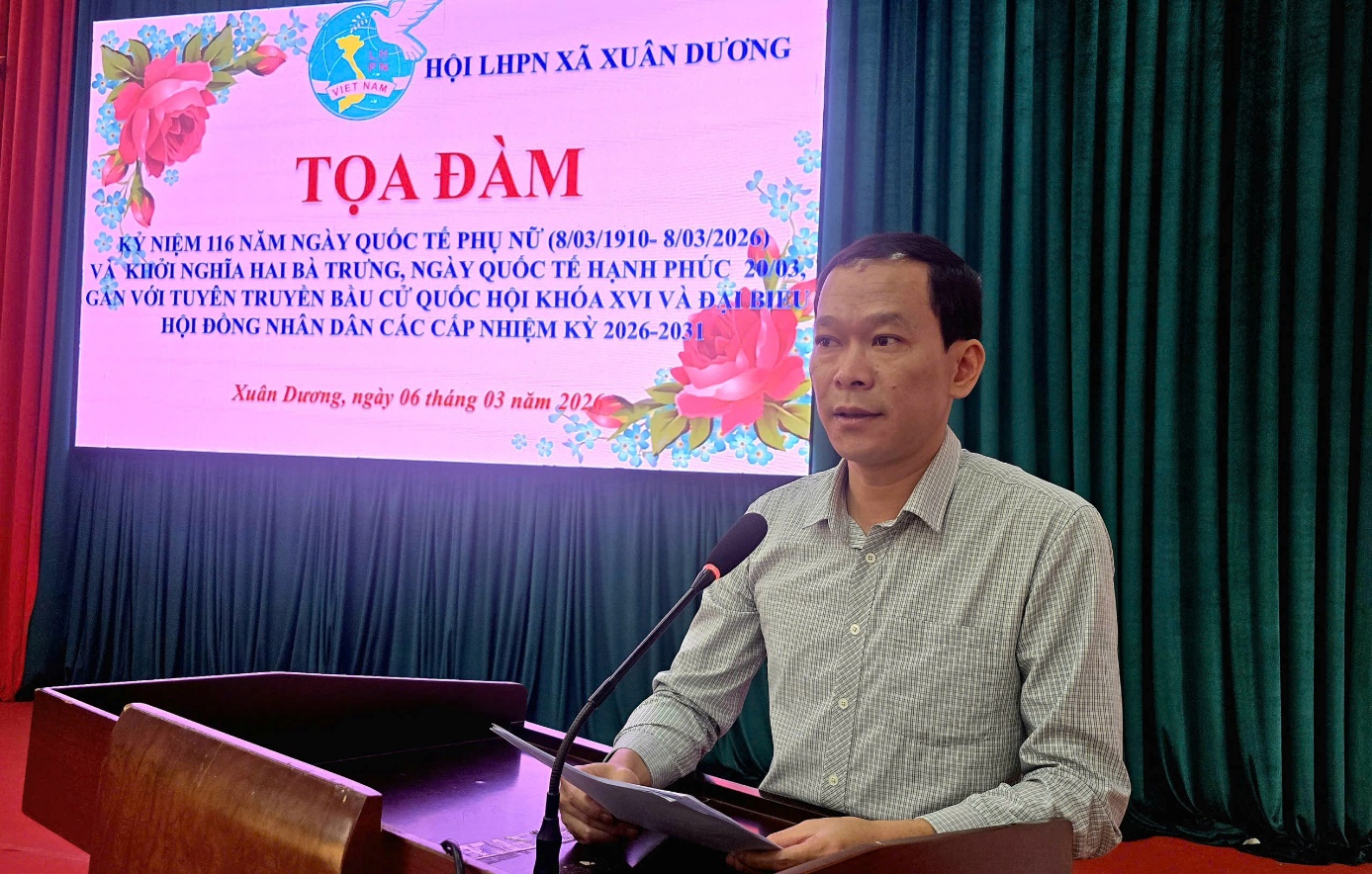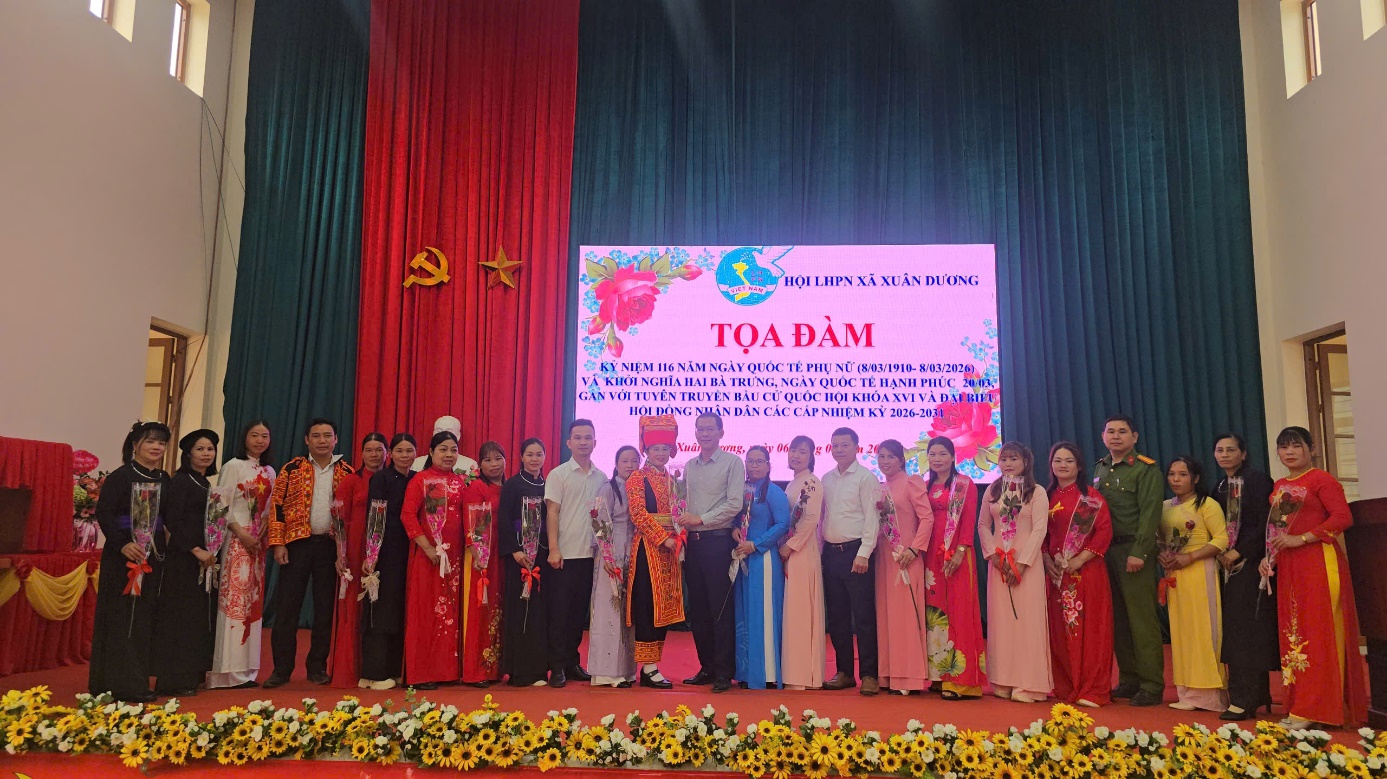 Ngày 06/3/2026, Tại Nhà Văn hóa xã Nhân dịp kỷ niệm 116 năm Ngày Quốc tế Phụ nữ (08/3/1910 – 08/3/2026) và ôn lại truyền thống Khởi nghĩa Hai Bà Trưng, Hội Liên hiệp Phụ nữ xã Xuân Dương đã tổ chức buổi tọa đàm gặp mặt, giao lưu nhằm tôn vinh vai trò, vị trí của phụ nữ trong gia đình và xã hội.