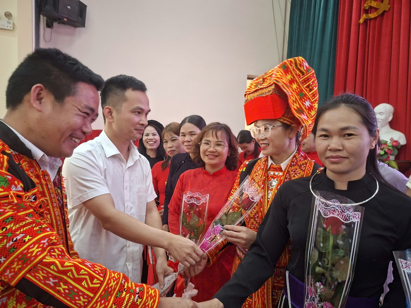Các đồng chí Lãnh đạo tặng hoa, chụp ảnh lưu niệm cùng tập thể Hội Liên hiệp phụ nữ xã