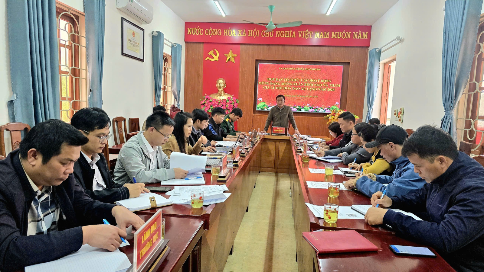 Tại cuộc họp các đại biểu tiến hành thảo luận, trao đổi ý kiến, thống nhất tham mưu cho cấp ủy, chính quyền xã tổ chức các hoạt động mừng Đảng, mừng Xuân Bính Ngọ và tham gia Lễ hội Hoa Đào Xứ Lạng năm 2026 gồm: Công tác truyền thông, quảng bá trên các phương tiện thông tin đại chúng, hệ thống loa phát thanh, trang thông tin điện tử; trên internet, các nền tảng mạng xã hội; công tác trang trí, pa nô, khẩu hiệu; các hoạt động thăm, tặng quà, chúc Tết các đối tượng chính sách là người có công với cách mạng, các đồng chí nguyên lãnh đạo xã Xuân Dương qua các thời kỳ; có hoàn cảnh đặc biệt khó khăn; hộ gia đình thoát nghèo tiêu biểu; đối tượng bảo trợ xã hội, người cao tuổi có hoàn cảnh đặc biệt khó khăn, người cao tuổi cô đơn không nơi nương tựa; người khuyết tật đặc biệt nặng; phát động hưởng ứng mặc Trang phục truyền thống các dân tộc Xuân Dương năm 2026; tổ chức các hoạt động thể dục thể thao; chương trình nghệ thuật mừng Đảng, mừng Xuân và chào đón Xuân Bính Ngọ năm 2026; lễ phát động “Tết trồng cây”; tham gia các hoạt động trong khuôn khổ Lễ hội Hoa Đào Xứ Lạng năm 2026...