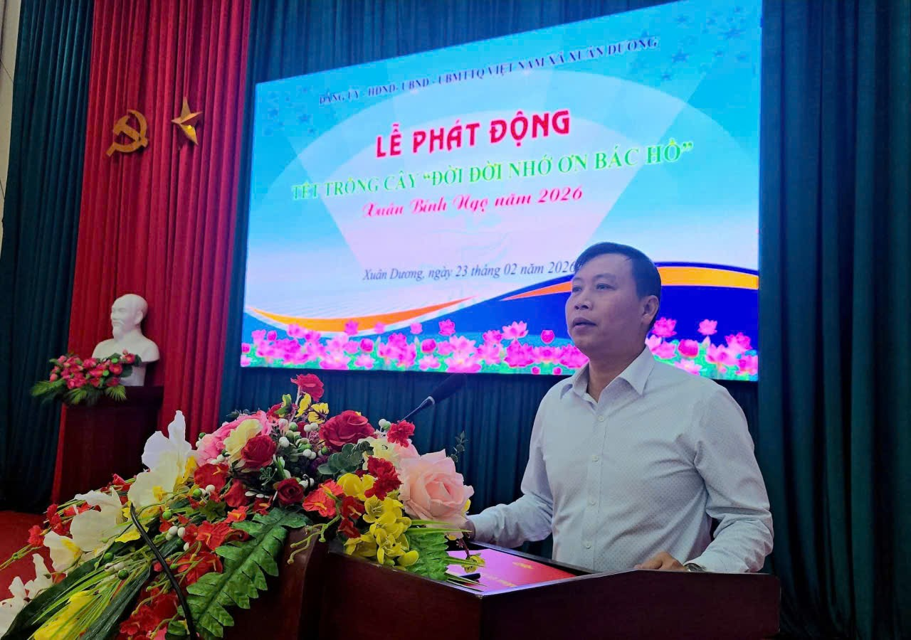 Sáng ngày 23/2/2026 (Tức ngày mùng 07 tháng Giêng năm Bính Ngọ), tại Nhà Văn hóa xã, Đảng ủy, HĐND, UBND, Ủy ban MTTQ Việt Nam xã Xuân Dương tổ chức Lễ phát động “Tết trồng cây đời đời nhớ ơn Bác Hồ” Xuân Bính Ngọ năm 2026.