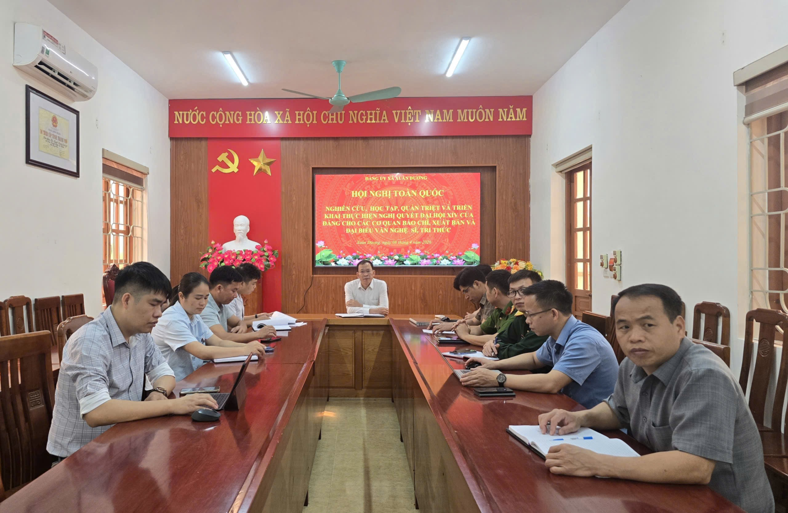 Sáng ngày 08/4/2026, Đảng ủy xã Xuân Dương đã tổ chức điểm cầu trực tuyến tham dự Hội nghị toàn quốc nghiên cứu, học tập, quán triệt và triển khai thực hiện Nghị quyết Đại hội XIV của Đảng dành cho các cơ quan báo chí, xuất bản và đại biểu văn nghệ sĩ, trí thức.