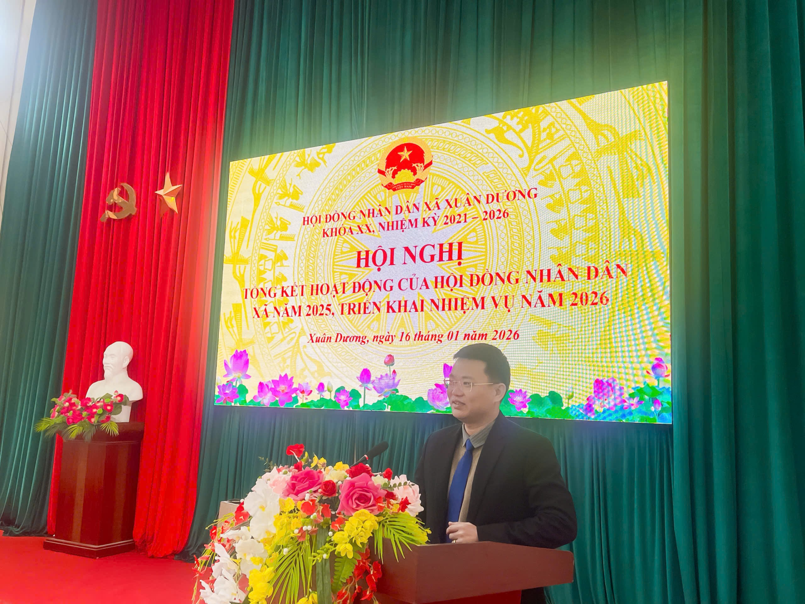 Sáng ngày 16/01/2026, tại Hội trường Nhà văn hóa xã Xuân Dương, Hội đồng nhân dân xã Xuân Dương tổ chức Hội nghị tổng kết hoạt động năm 2025, triển khai nhiệm vụ năm 2026.