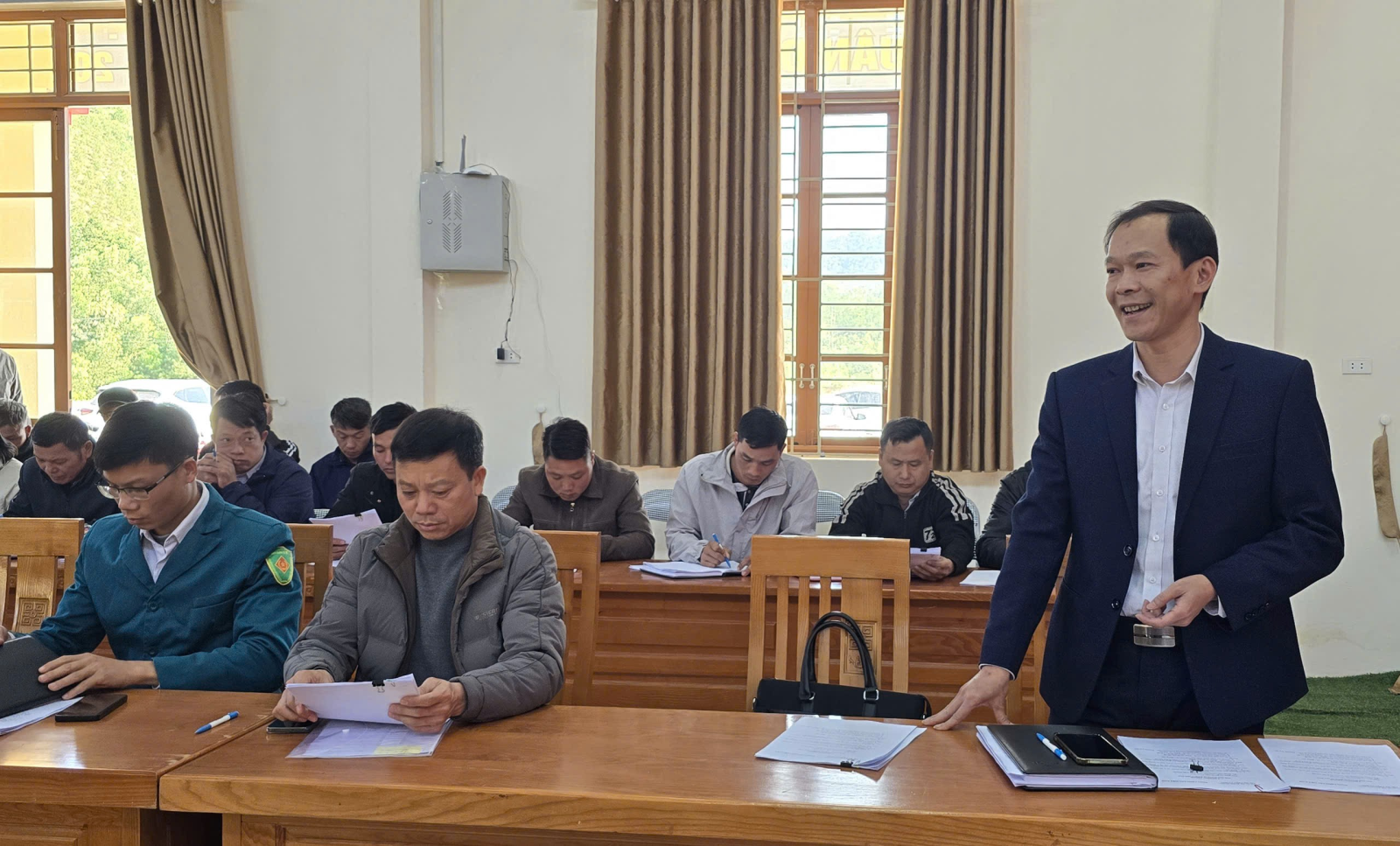 Đồng chí Lành Kim Quang, Phó Bí thư Thường trực Đảng uỷ xã phát biểu chỉ đạo tại buổi sinh hoạt