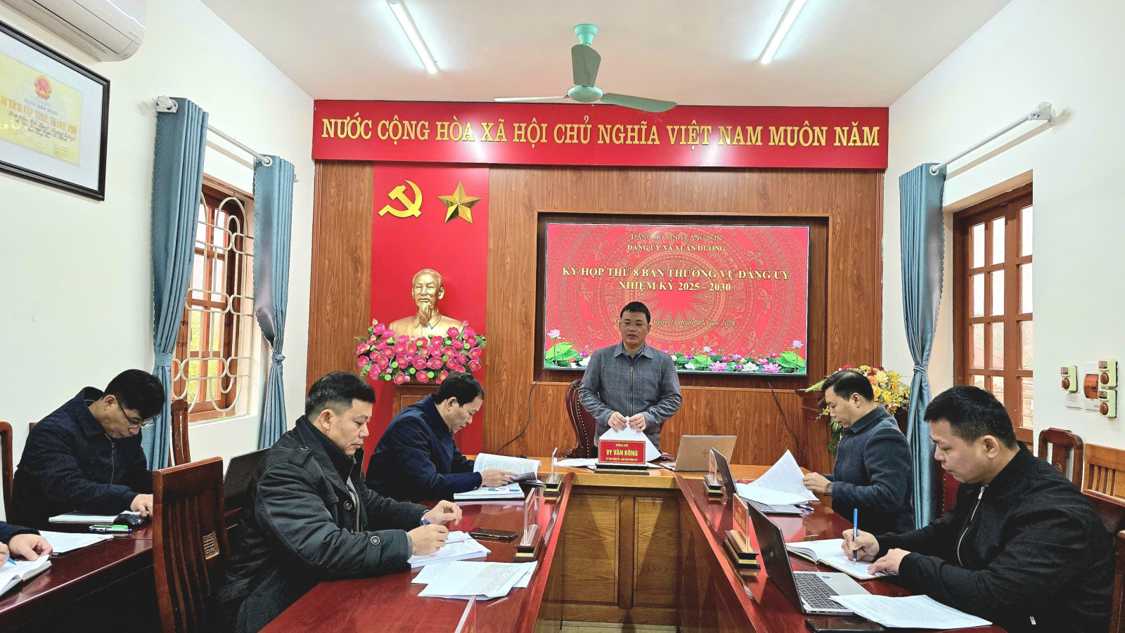 Ngày 23/01/2026, Ban Thường vụ Đảng ủy xã Xuân Dương tổ chức kỳ họp thứ 8, nhiệm kỳ 2025-2030 để đánh giá kết quả thực hiện các mục tiêu, nhiệm vụ tháng 01, triển khai nhiệm vụ tháng 02 năm 2026. Đồng chí Vy Văn Bông, Bí thư Đảng ủy, Chủ tịch HĐND xã chủ trì kỳ họp. Dự có đồng chí Lành Kim Quang, Phó Bí thư Thường trực Đảng ủy; đồng chí Phạm Văn Hoài, Phó bí thư Đảng ủy, Chủ tịch UBND xã; các đồng chí Ủy viên Ban Thường vụ Đảng ủy.