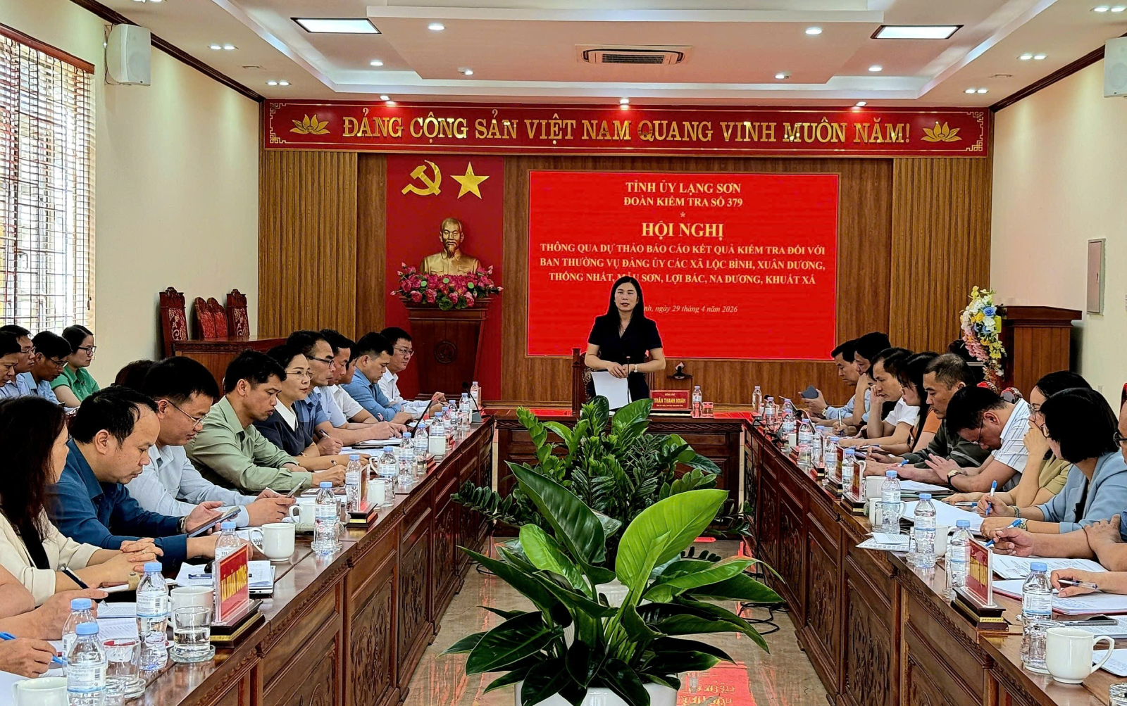 Chiều ngày 29/4/2026, tại xã Lộc Bình, Đoàn Kiểm tra của Ban Thường vụ Tỉnh uỷ theo Quyết định số 379-QĐ/TU, ngày 13/4/2026 của Tỉnh ủy Lạng Sơn do đồng chí Trần Thanh Nhàn, Phó Chủ tịch UBND tỉnh, Phó Trưởng Đoàn kiểm tra chủ trì Hội nghị thông qua dự thảo báo cáo kết quả kiểm tra đối với Ban Thường vụ Đảng ủy các xã: Lộc Bình, Xuân Dương, Thống Nhất, Mẫu Sơn, Lợi Bác, Na Dương, Khuất Xá. Dự Hội nghị có các đồng chí thành viên Đoàn kiểm tra; Thường trực Đảng ủy, lãnh đạo UBND xã; đại diện các cơ quan tham mưu giúp việc Đảng ủy; đại diện lãnh đạo các cơ quan chuyên môn của UBND xã.