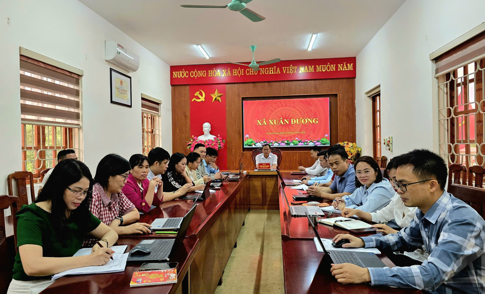 Sáng 23/4/2026, Đảng uỷ xã Xuân Dương tổ chức điểm cầu dự Hội nghị tập huấn, trao đổi kinh nghiệm, kỹ năng xây dựng tác phẩm chính luận về bảo vệ nền tảng tư tưởng của Đảng và một số kỹ năng tác nghiệp trên không gian mạng do Ban Tuyên giáo và Dân vận Tỉnh ủy Lạng Sơn tổ chức.