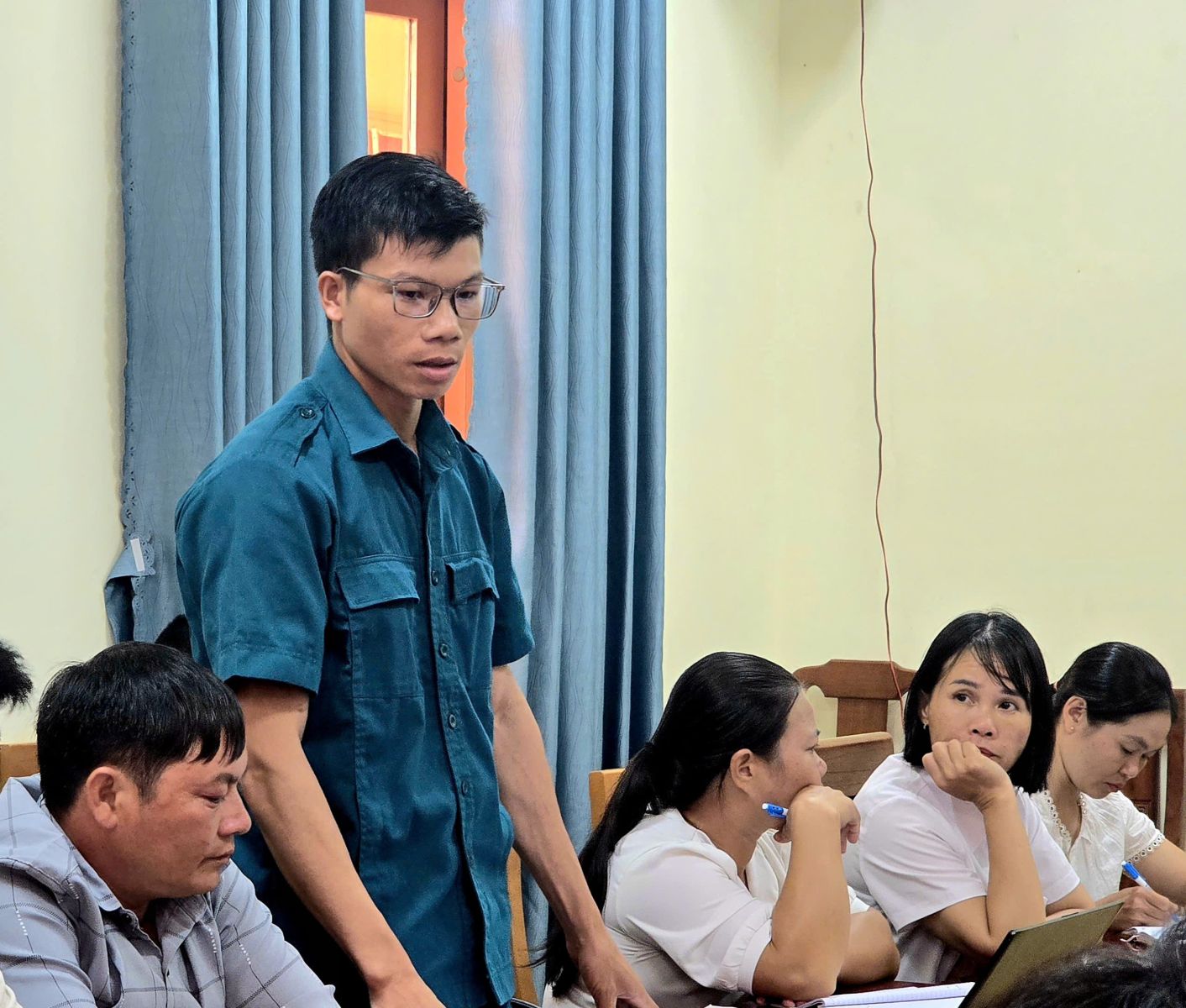 Đồng chí Phạm Văn Hoài, Phó bí thư Đảng ủy - Chủ tịch UBND xã, Trưởng Ban Chỉ huy Phòng thủ dân sự xã chủ trì cuộc họp