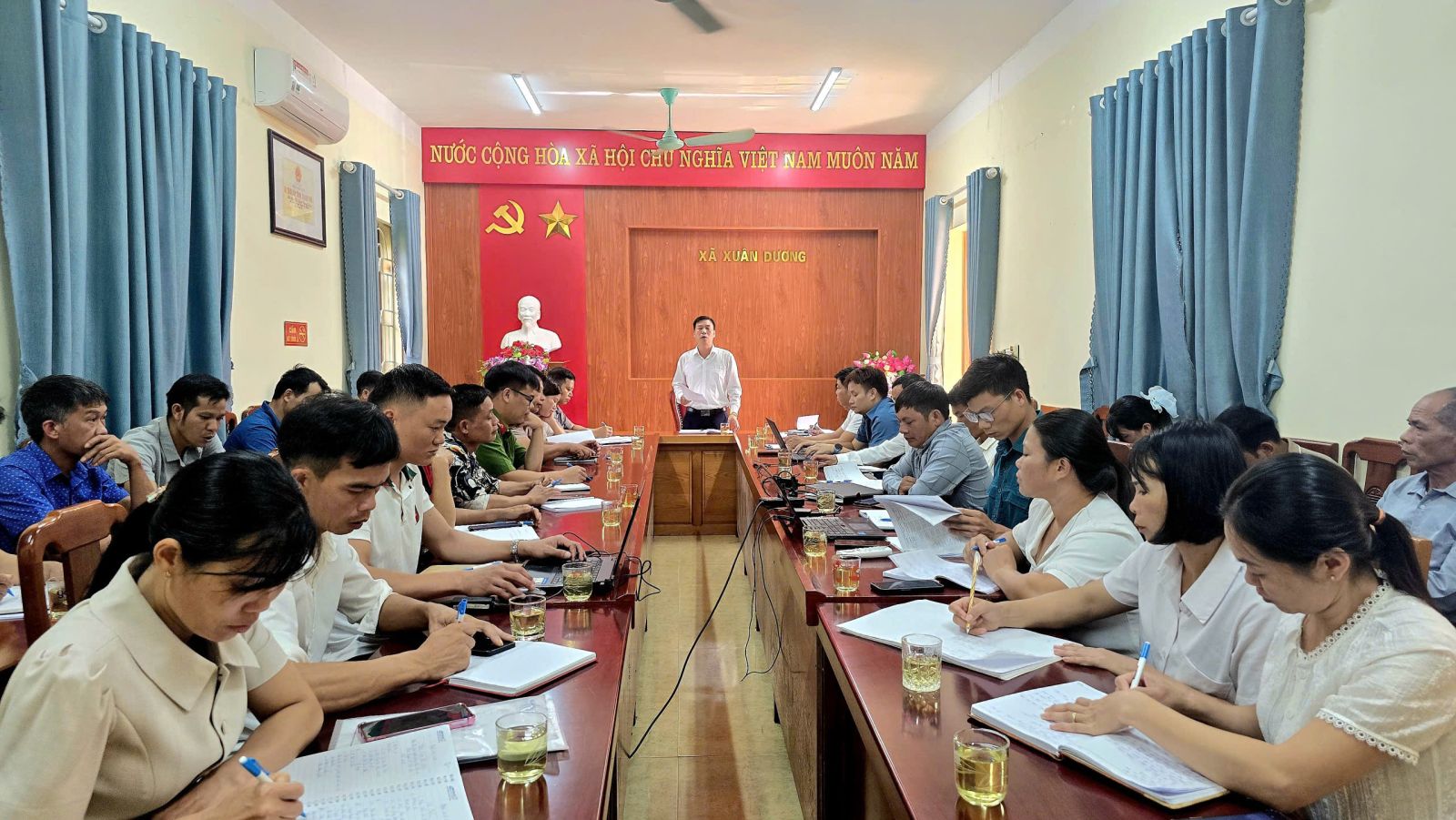 Chiều ngày 23/9/2025, Uỷ ban nhân dân xã Xuân Dương tổ chức cuộc họp triển khai các biện pháp ứng phó Bão số 9 (Ragasa), đồng chí Phạm Văn Hoài, Phó Bí thư Đảng ủy, Chủ tịch UBND xã, Trưởng Ban Chỉ huy Phòng thủ dân sự xã chủ trì cuộc họp; dự có các thành viên Ban Chỉ huy Phòng thủ dân sự xã; Trưởng các thôn trên địa bàn xã.