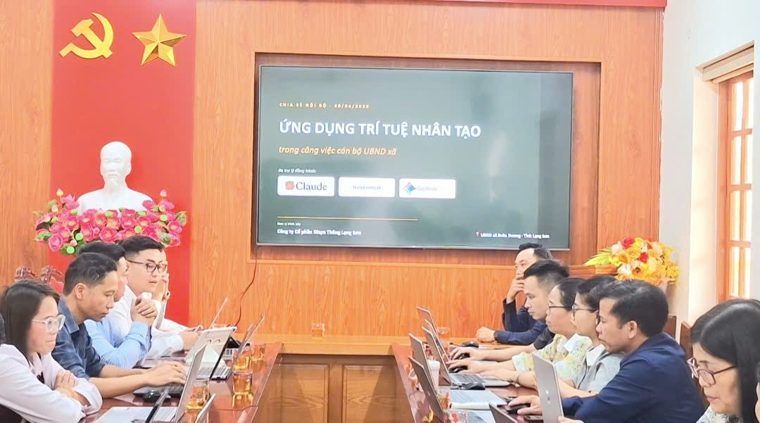 Chiều ngày 28/4/2026, tại trụ sở làm việc, UBND xã Xuân Dương đã phối hợp với Công ty Cổ phần Nhựa thông Lạng Sơn tổ chức lớp tập huấn ứng dụng trí tuệ nhân tạo (AI) nâng cao hiệu quả công việc cho đội ngũ cán bộ, công chức, viên chức trên địa bàn xã.