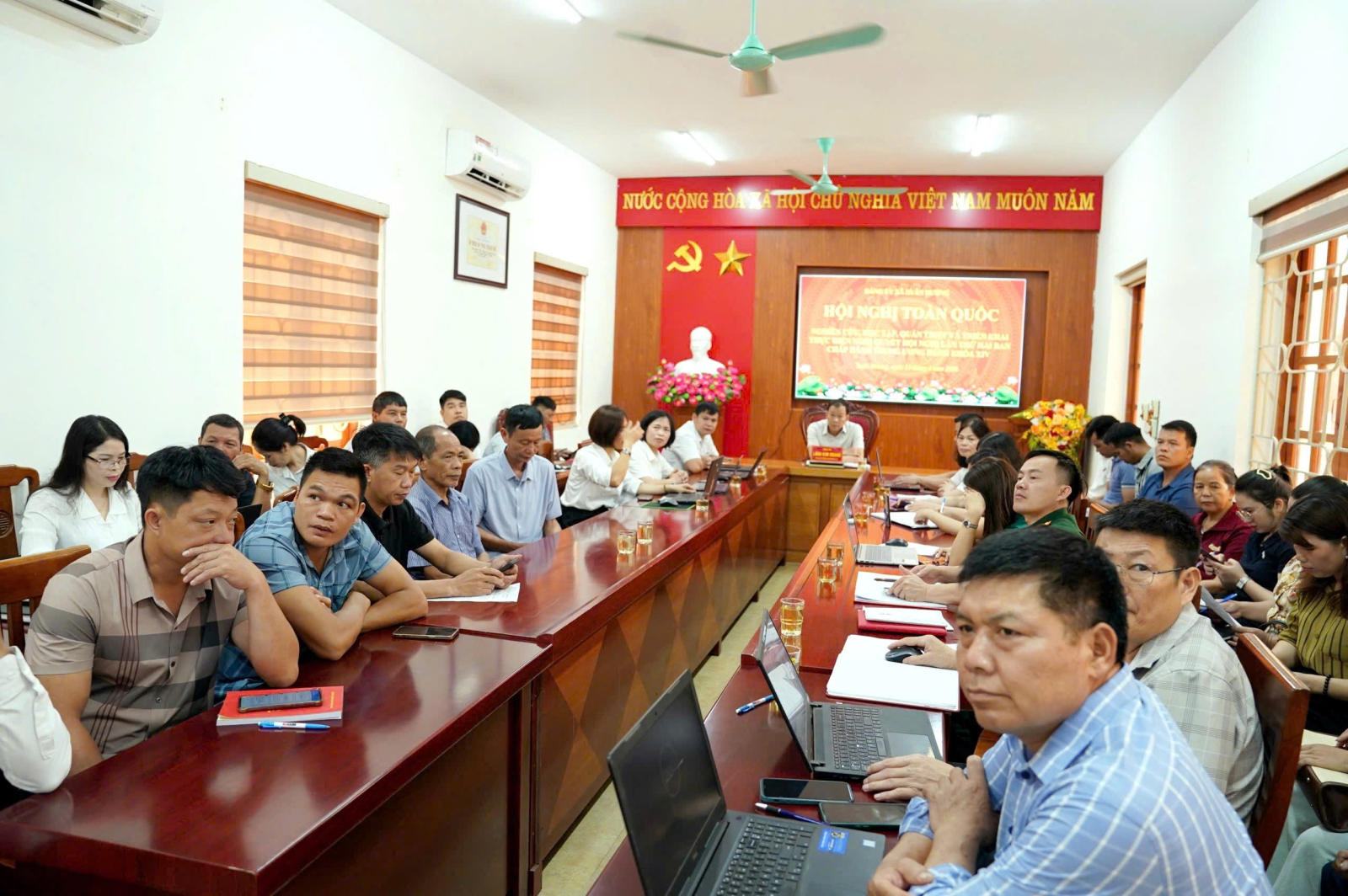 Sáng ngày 13/4/2026, Đảng ủy xã Xuân Dương tổ chức điểm cầu trực tuyến tham dự Hội nghị toàn quốc nghiên cứu, học tập, quán triệt và triển khai thực hiện Nghị quyết Hội nghị lần thứ hai Ban Chấp hành Trung ương Đảng khóa XIV. Hội nghị được kết nối trực tiếp từ Trung ương đến các địa phương trong cả nước.