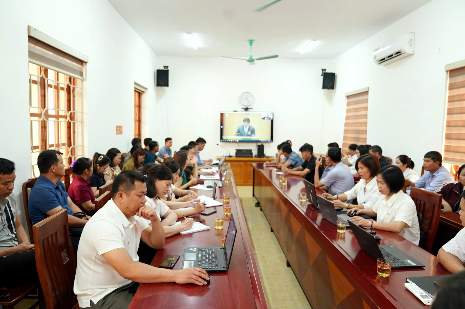 Các đại biểu dự hội nghị tại điểm cầu xã Xuân Dương